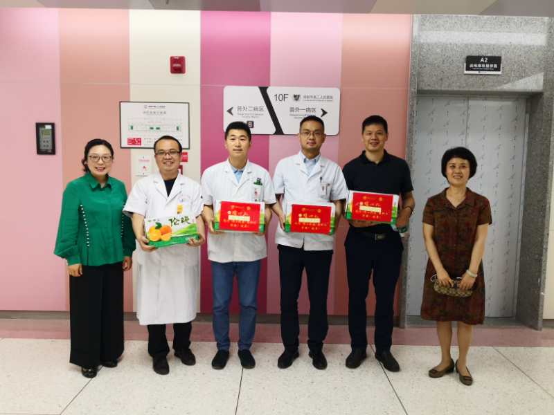 2020年5月14日上午10:00,学校校工会主席郑江、英国威廉希尔唯一官网直属党支部书记李锦红带队,来到学校附属医院(成都市三医院)普外一病区,代表学校慰问了疫情期间坚守临床岗位,同时不忘教书育人、共抗疫情的英国威廉希尔唯一官网硕士生导师、学校附属医院“白衣战士”代表。