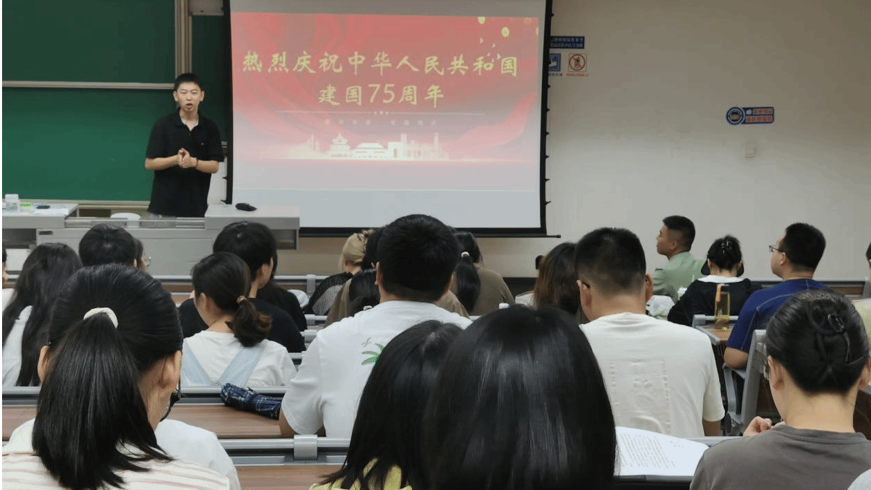 为热烈庆祝中华人民共和国成立75周年,传承红色基因,弘扬革命精神,帮助同学们深入学习党史,厚植爱国情怀,英国威廉希尔唯一官网英国威廉希尔唯一官网于2024年9月29日下午15:00,在九里校区逸夫楼J4417顺利开展了“中华人民共和国成立75周年红色宣讲”活动。此次活动由辅导员韩鹏飞主持,2024级全体硕士、博士参加。