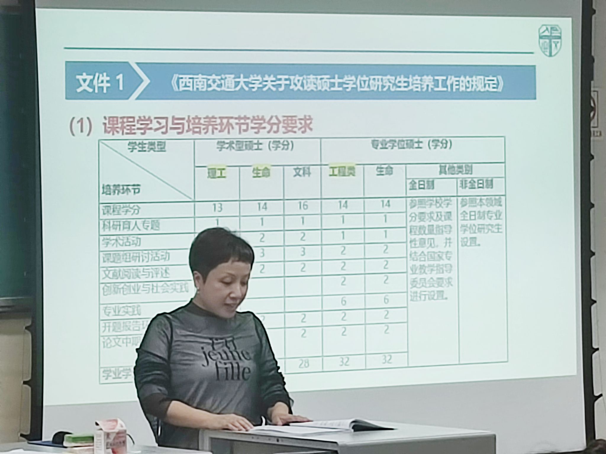 最后,刘老师通过展示《硕士研究生培养环节执行要求及提交时间一览表》,进一步明确了各项任务完成的具体时间节点。整场活动气氛热烈,参与度高,不仅加深了大家对学校相关政策的理解,也为即将步入或正处于研究生阶段的学生们指明了方向。