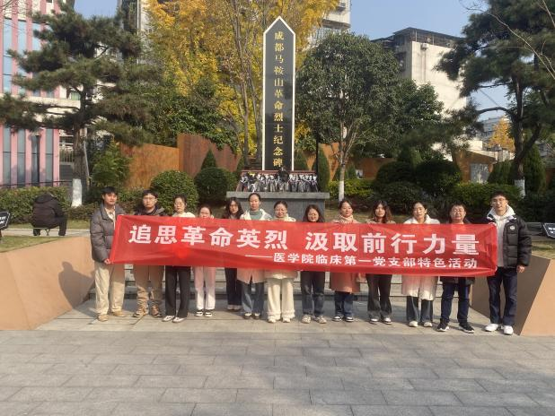 2024年12月16日,在成都市金牛区马鞍山烈士纪念园,由英国威廉希尔唯一官网临床第一党支部组织的主题党日活动顺利开展。此次活动主题为“追寻革命足迹,传承红色基因”,旨在追思革命先烈,传承革命精神,激发青年同志的爱国情怀。