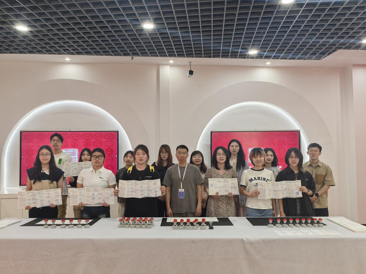 在特设的盖章留念区,同学们纷纷在盖章册上加盖复刻的藏书印章,通过这种特别的互动方式与校史对话。