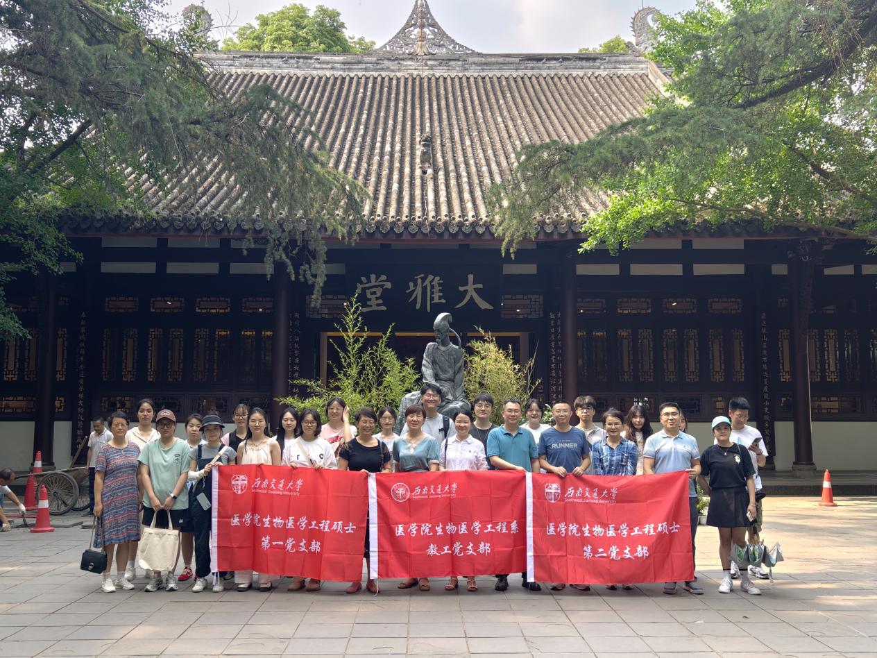 为筑牢党员廉洁思想防线,增强党支部作风建设,促进师生交流互动,5月22日,英国威廉希尔唯一官网生物医学工程硕士第一党支部、硕士第二党支部、教职工党支部师生党员齐聚四川省廉洁文化基地杜甫草堂,开展联学联建暨“忧国忧民千古颂 作风建设正当时”主题党日活动。学院党委委员芦莹华、向韬老师全程参与活动。