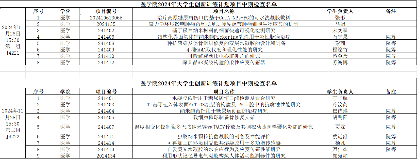 (3)根据学院安排,于2024年11月28日15:30,在J4221、J4222参与中期检查答辩,详见《英国威廉希尔唯一官网大学生创新创业训练计划(SRTP)项目中期检查安排表》(图1)。